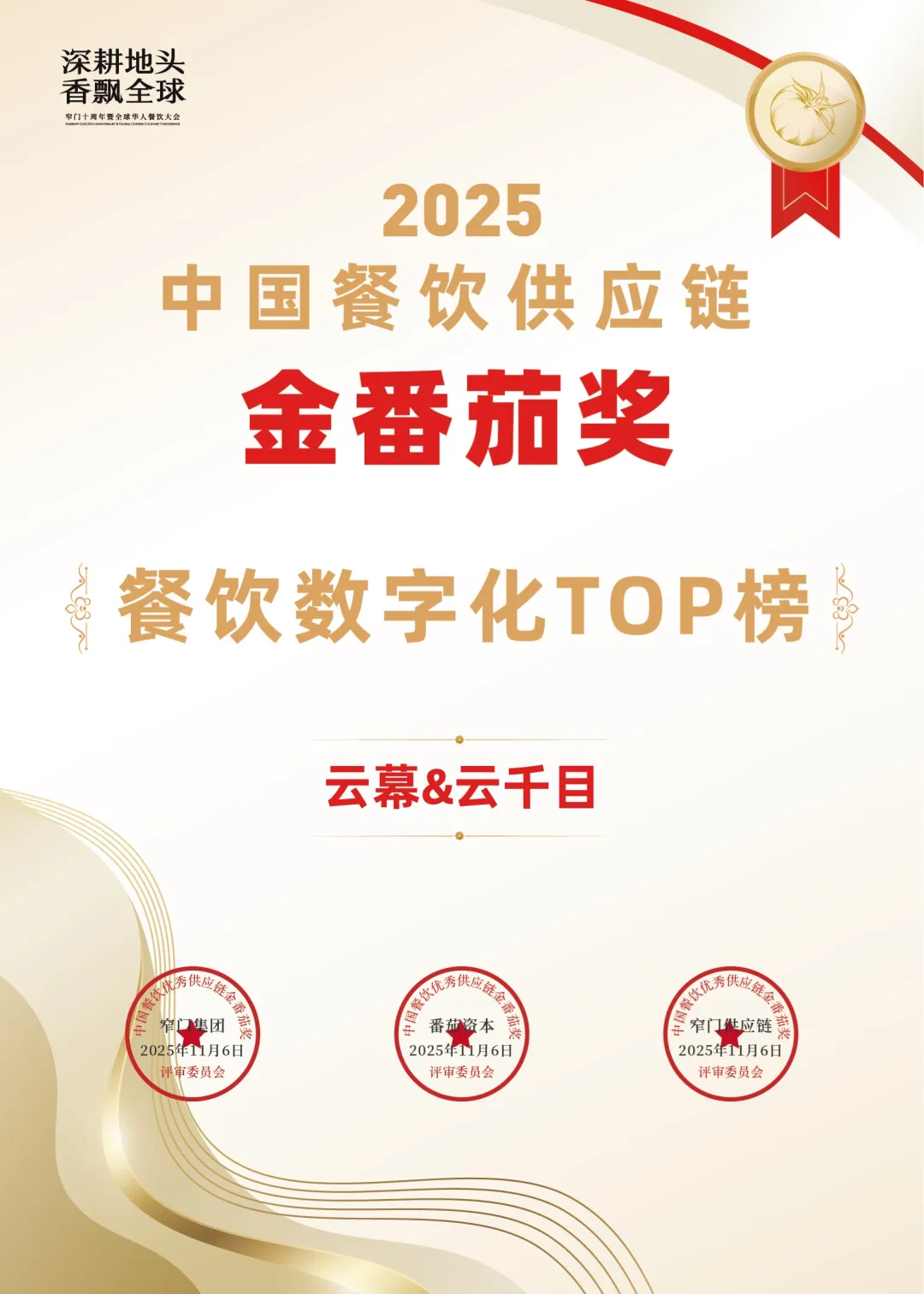 实力上榜!云幕&云千目荣获2025中国餐饮供应链金番茄奖