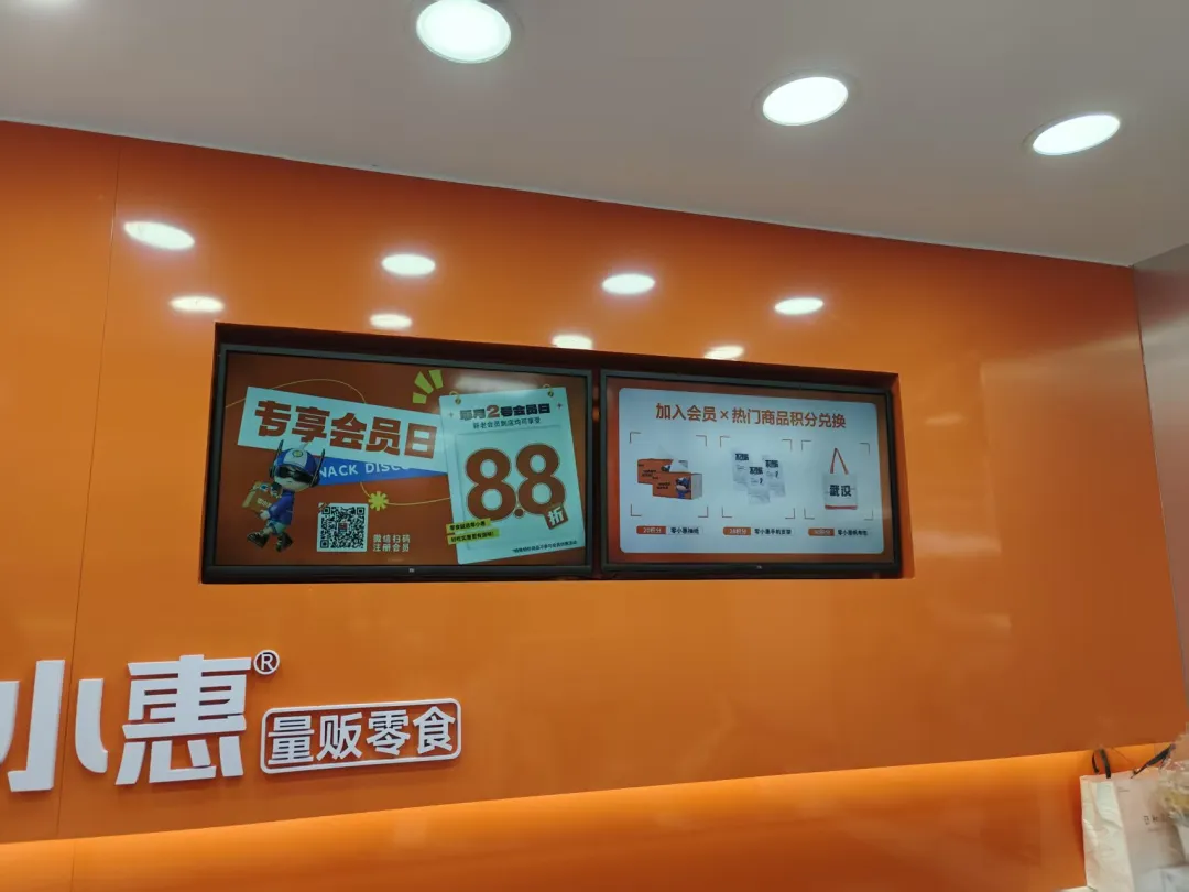 通过云幕系统,零小惠零食实现了:①总部统一内容管理 ②一键下发至全国门店 ③屏幕内容实时同步更新,让各类活动与品牌信息能够第一时间触达消费者,有效提升门店转化效率。