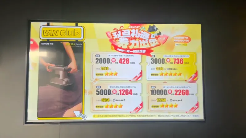 ·灵动分屏: 屏幕左侧循环播放高质感品牌宣传片,强化高端调性;右侧同步展示会员充值优惠与套餐信息,顾客在享受视觉放松的同时,潜移默化地被促销信息触达,有效提升转化率。
