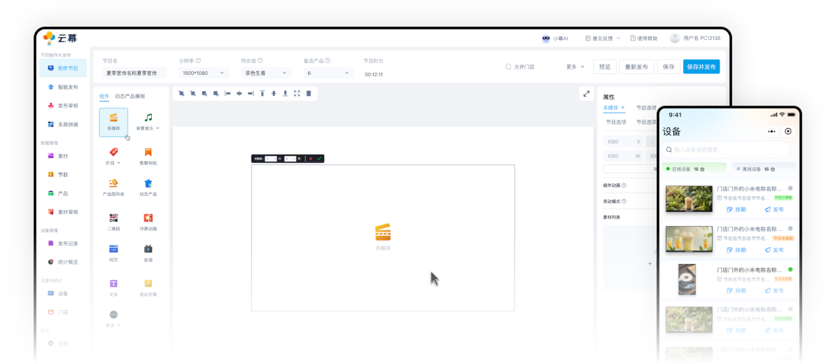 支持多场景节目排期与智能发布,实现千店千面精准投放。